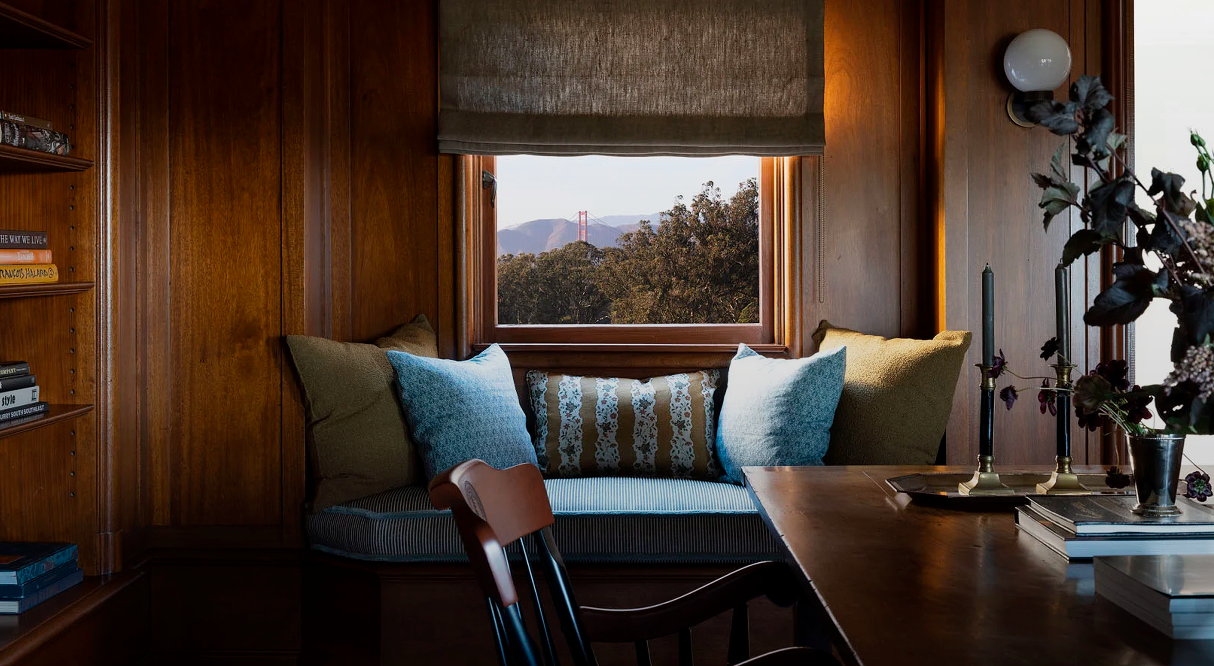 The historic setting of a 1906-built shingled craftsman overlooking the Presidio National Park and Golden Gate Bridge immediately set the tone for the interior scheme. Marea and architect Judith Mattingly seamlessly integrated the natural surroundings and preserved the original architectural character, updating the layout to suit modern family living. Striking a balance between sophistication and comfort, the color palette features gentle neutrals complemented by hints of green and blue reminiscent of the outdoor landscape. Marea curated distinct experiences throughout the house where furnishings both classic and contemporary are found. From bright communal zones to intimate nooks, the home embraces the essence of familial warmth.